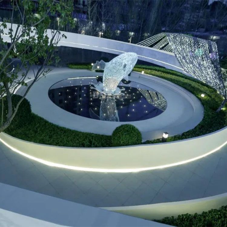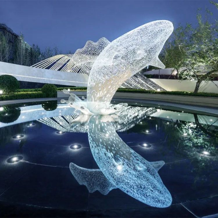 ไฟประดับสวนตกแต่งบ้านรูปปั้นสัตว์ลวดโลหะแบบนามธรรมกลวงรูปปั้นปลาวาฬลวดสแตนเลสขนาดใหญ่สำหรับตกแต่งสวน