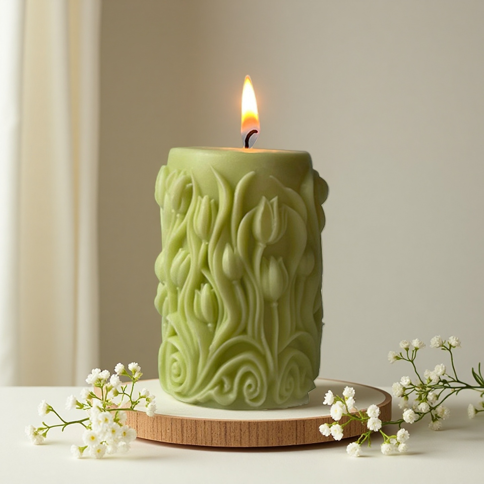 เทียนเสาถั่วเหลืองสีขาวล้วนทำด้วยมือของตกแต่งบ้านเทียนหอมอโรมา