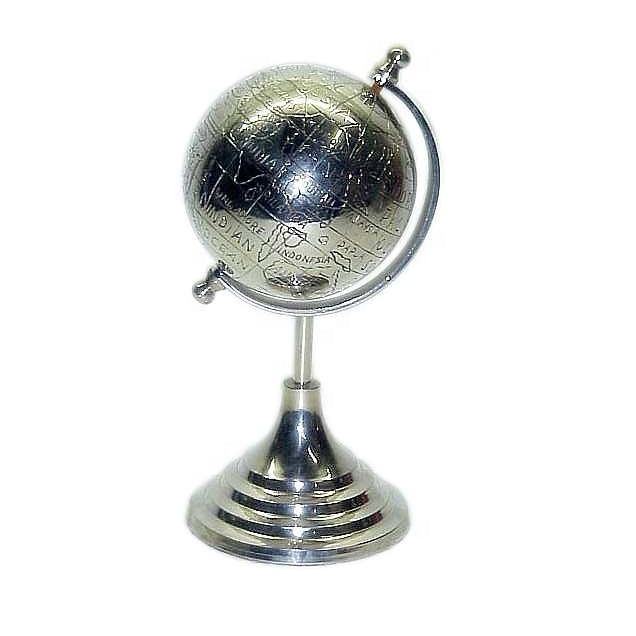 ของตกแต่งบ้านคุณภาพสูงอลูมิเนียม Armillary ลูกโลกพร้อมฐานโลหะตกแต่งสก์ท็อปลูกโลกโลหะด้วยชิ้นงานฝีมืออินเดีย