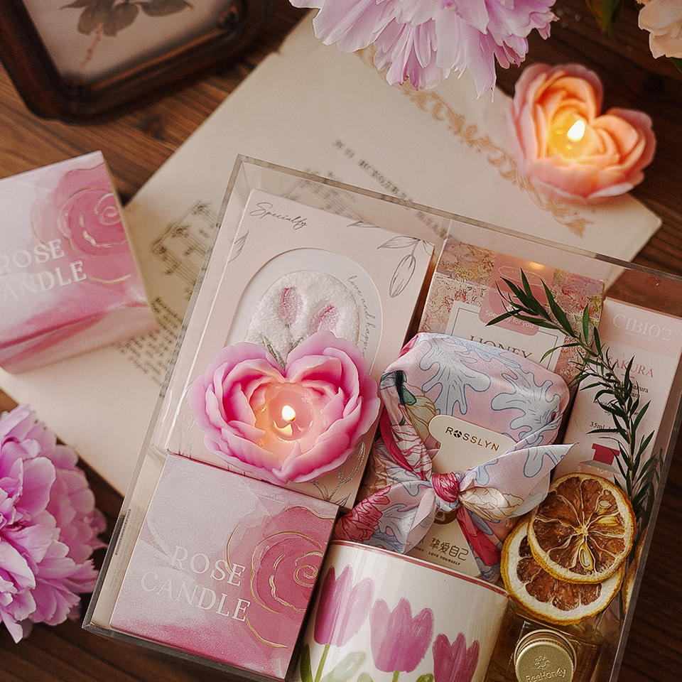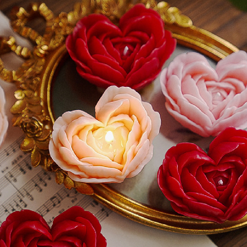 เทียนหอมรูปหัวใจดอกกุหลาบ ทำมือจากขี้ผึ้งถั่วเหลืองและพาราฟิน ของขวัญวันวาเลนไทน์สำหรับตกแต่งบ้าน