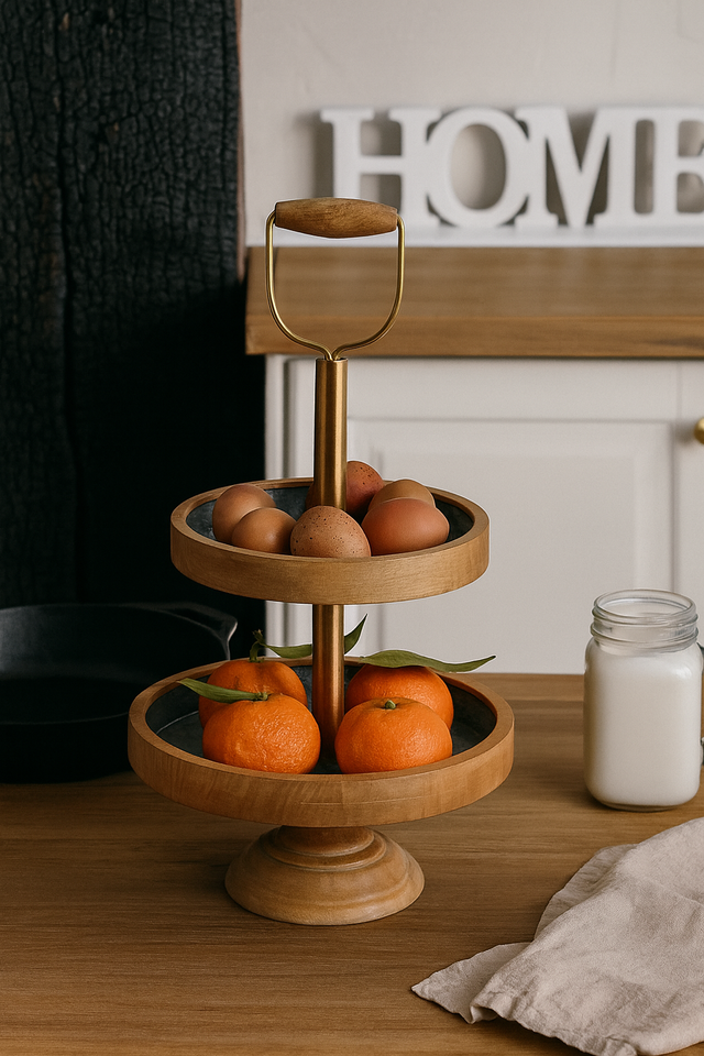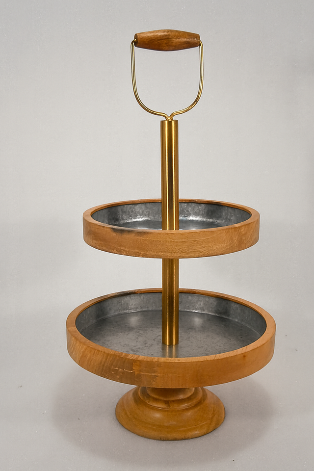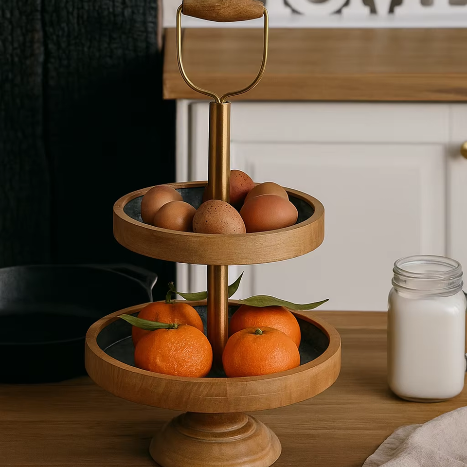 ชั้นวางเค้กทรงกลมแบบ2ชั้นอุปกรณ์ตกแต่งบ้านที่วางกลางเค้กผลไม้คัพเค้ก