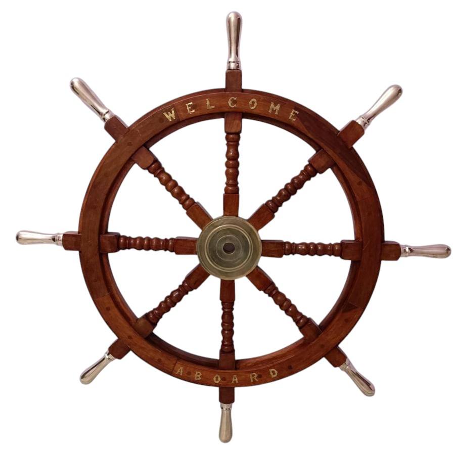 อุปกรณ์ตกแต่งบ้านล้อเรือรอบปรับแต่งขนาดทำด้วยมือไม้อะคาเซียจริงล้อเรือตกแต่งผนังสำหรับกิจกรรมวันหยุด