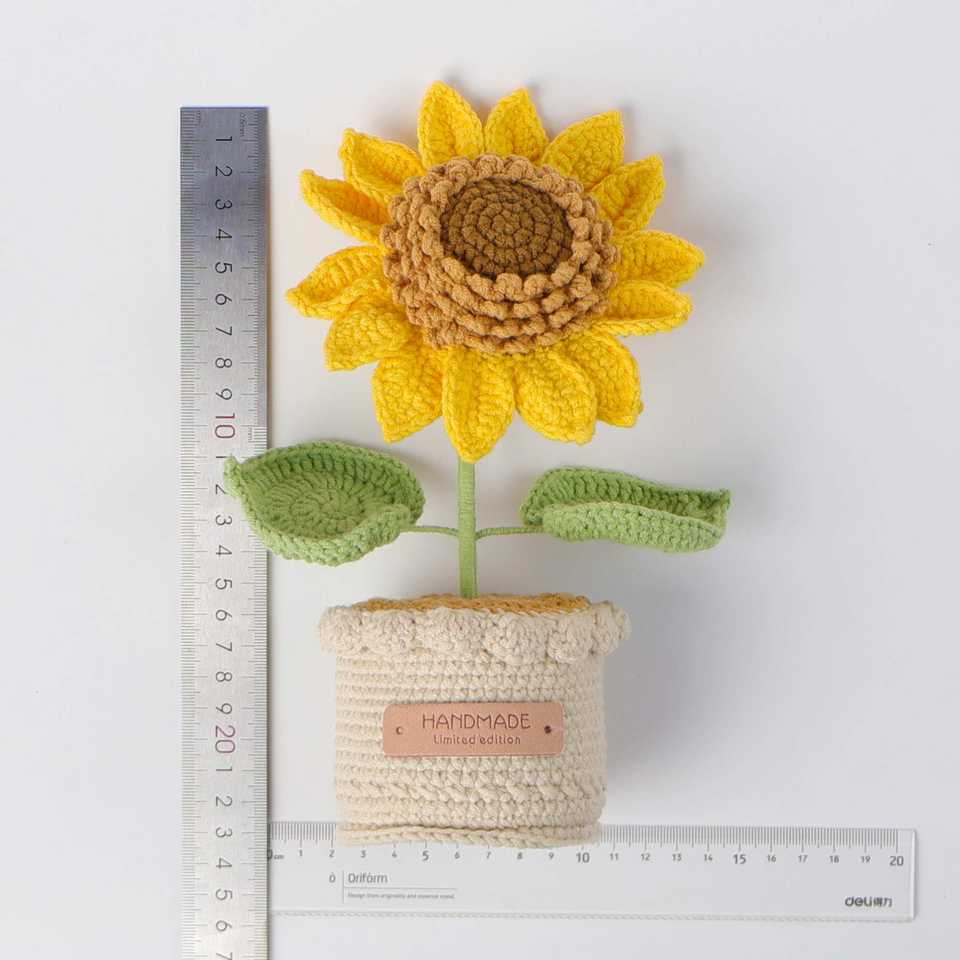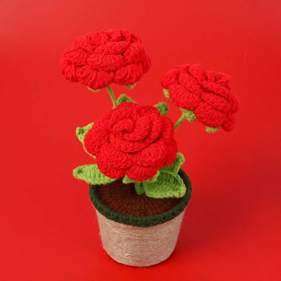ของตกแต่งบ้าน ดอกกุหลาบจีนปลอมในกระถาง ทำจากไหมพรมถัก เหมาะสำหรับวันรับปริญญา วันแม่ หรือวันอีสเตอร์
