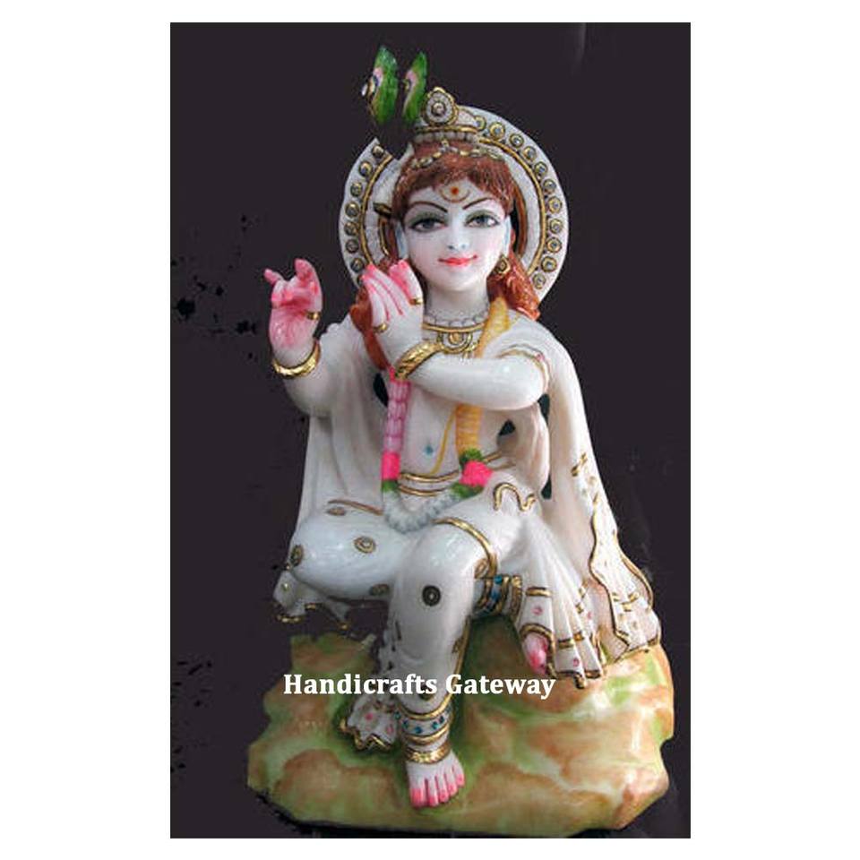 รูปปั้นพระกฤษณะหินอ่อนสีขาวทำมือตกแต่งบ้าน