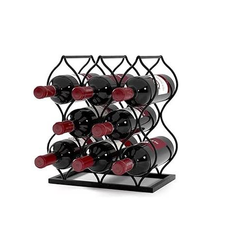 ชั้นวางไวน์แบบมีลวดเหล็กสำหรับตกแต่งบ้านชั้นวางขวดไวน์แบบวางซ้อนกันได้เคาน์เตอร์แบบเรียบง่ายที่วางขวดไวน์โลหะ