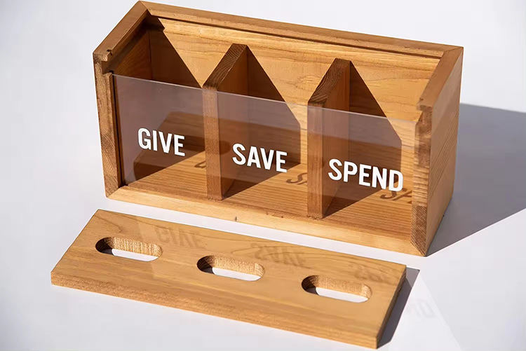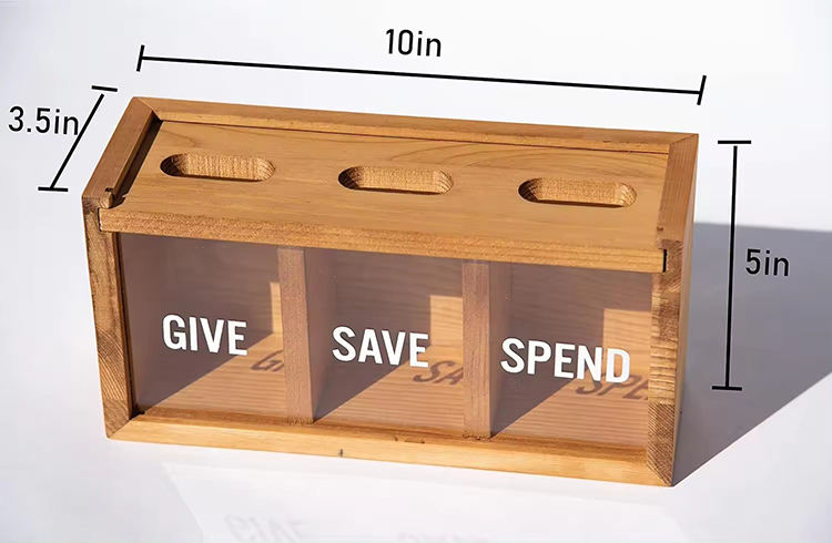 Home Decoration Kids' Money Management Rustic Wooden 3 - Compartment Transparent FrontLiteracy Cash and Coin Storage Box