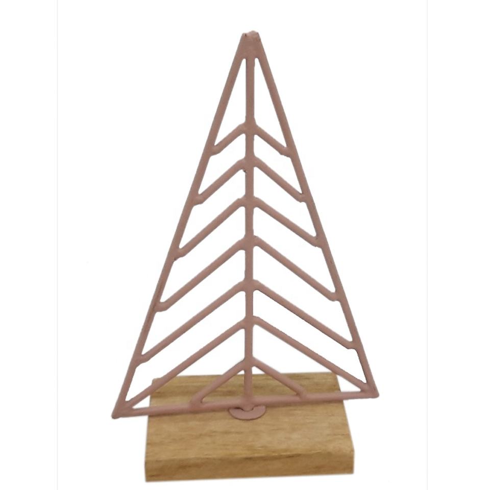 ของตกแต่งบ้านที่ชื่นชอบเหล็กตกแต่งคริสต์มาสสีชมพูและต้นคริสต์มาสที่ทำจากไม้พร้อมฐานสี่เหลี่ยมสำหรับวางบนโต๊ะ