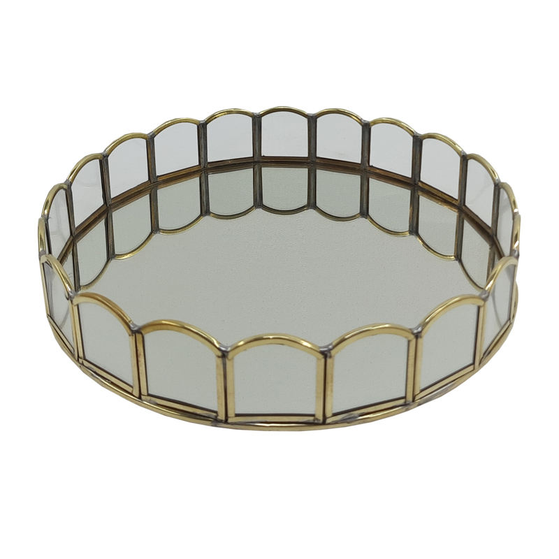 ถาดรองแก้วทองเหลืองและล้างสีเทาสำหรับตกแต่งบ้านถาดกระจกมีรูพรุนดีไซน์เหล็กสำหรับตกแต่งคริสต์มาสบ้าน