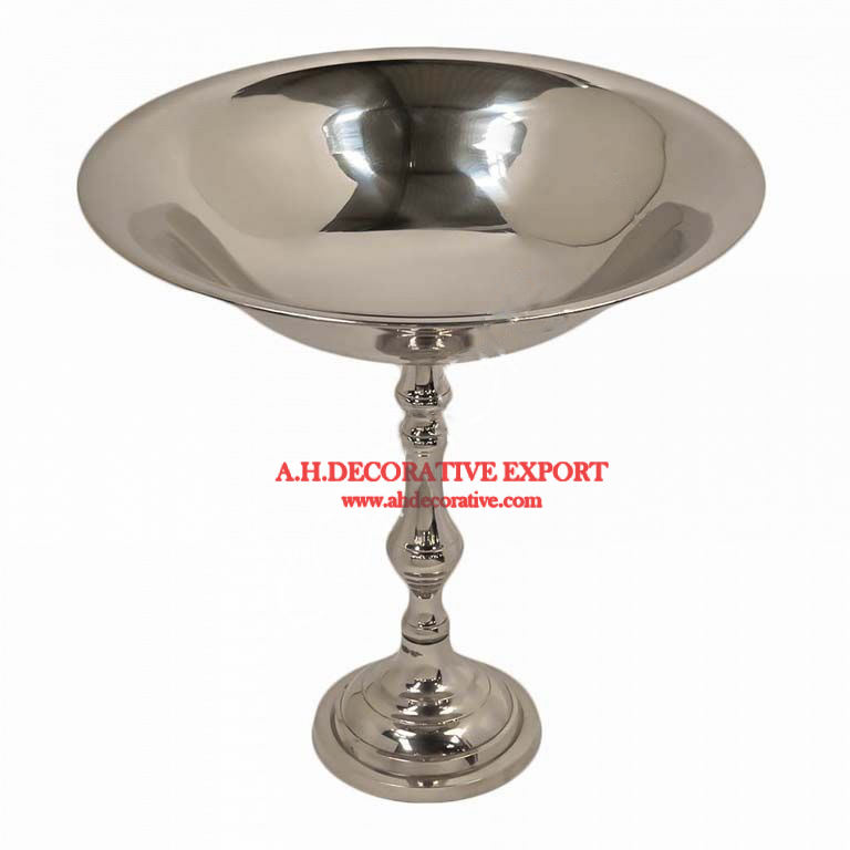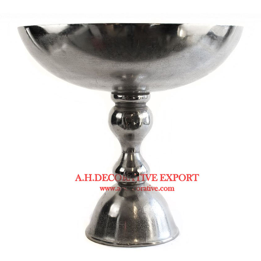 ชามอะลูมิเนียมสีเงินคุณภาพสูงสำหรับตกแต่งบ้าน พร้อมฐานโลหะทรงสี่เหลี่ยมสำหรับใส่ผลไม้