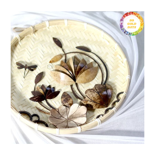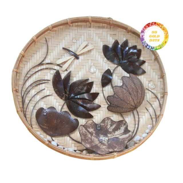 ชื่อผลิตภัณฑ์:ภาพฝังกะลามะพร้าวบนถาดไม้ไผ่
