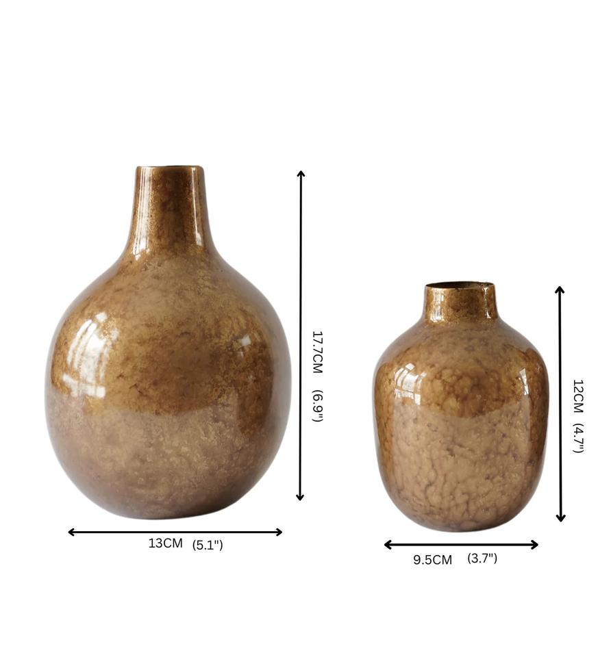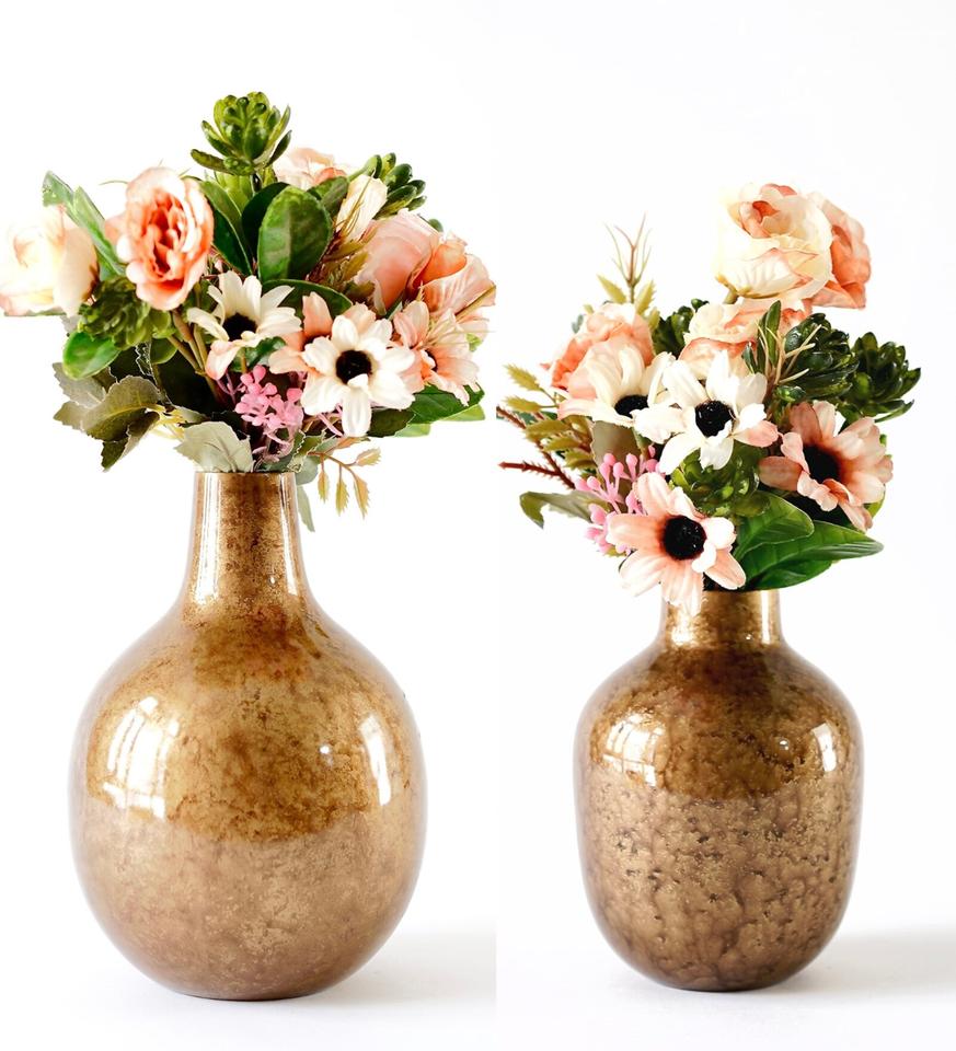 ชุดแจกันโลหะแบบพกพากระถางต้นไม้ชุบทองดีไซน์ทันสมัย