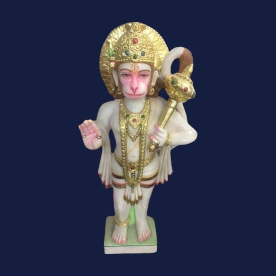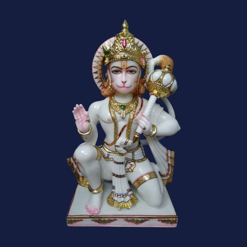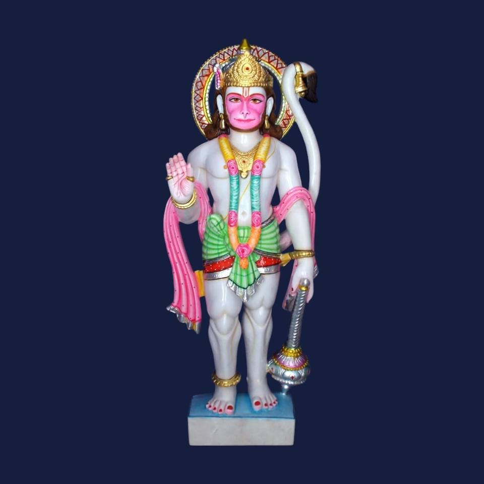 รูปปั้นรูปหนุมานหินอ่อนสีขาวบริสุทธิ์สำหรับตกแต่งบ้านทำด้วยมือรูปปั้นพระหนุมานอินเดียสีสันสดใส