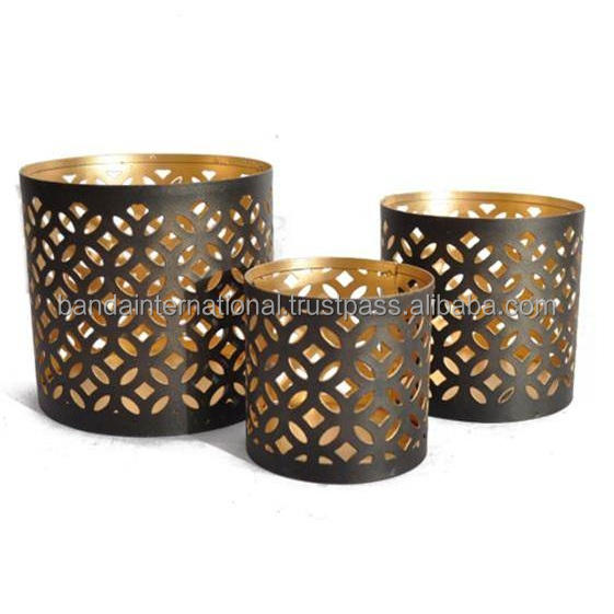 Home Decorative Round Iron Votive Candle Holder Set Of 3 Pcs With Inside Gold And Outside Black Powder Coating Finished