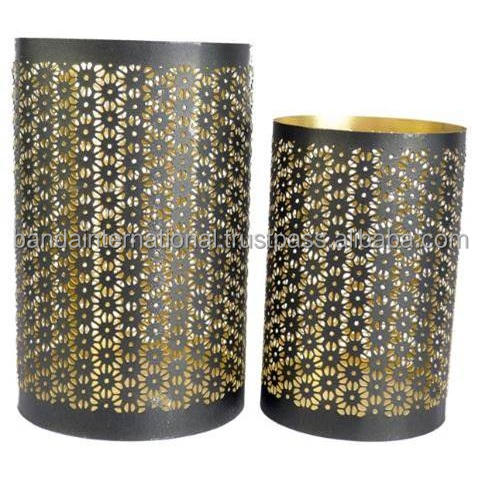 ชุดเชิงเทียนเหล็กทรงกลมสำหรับตกแต่งบ้าน2ชิ้นเคลือบด้วยผงสีดำด้านในและด้านนอก