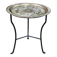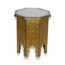 โต๊ะกาแฟโมร็อกโกตกแต่งบ้านแบบดั้งเดิมเฟอร์นิเจอร์ห้องนั่งเล่นโต๊ะกาแฟคลาสสิกพร้อมกรอบไม้และด้านบนเป็นทองเหลือง