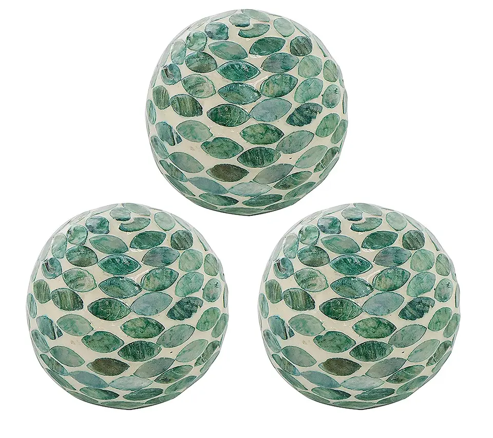 แม่ลูกประดับฝังมุก,ลูกกลมโมเสกเปลือกหอยสีเขียวและสีเขียว