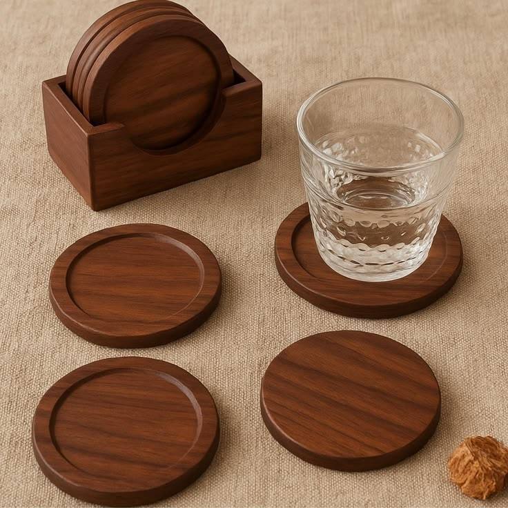 ชุดจานรองแก้วไม้ทรงกลมสำหรับใช้ในบ้าน ทนความร้อน ใช้รองเครื่องดื่ม กาแฟ ชา แก้วน้ำ ป้องกันการลื่น ป้องกันพื้นผิวโต๊ะ