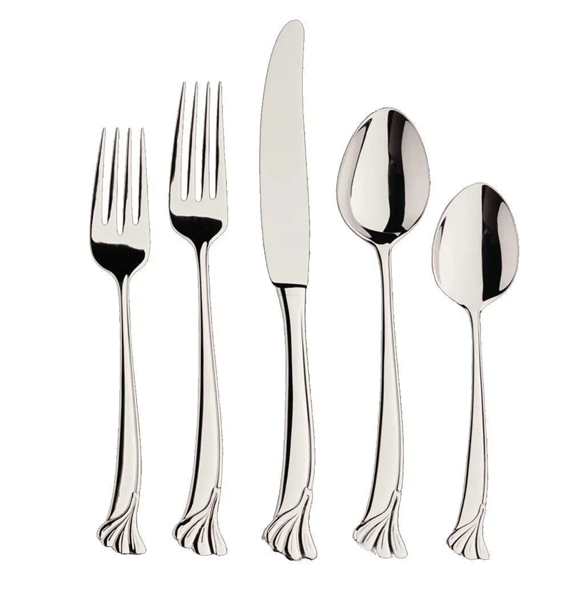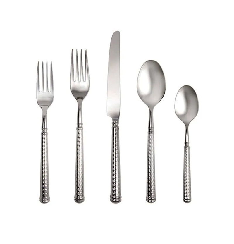 ชุดมีดส้อมช้อนสแตนเลสใช้ซ้ำได้ชุดเครื่องใช้บนโต๊ะอาหารที่มีด้ามจับเป็นเอกลักษณ์ทำจากเหล็กเคลือบเงา