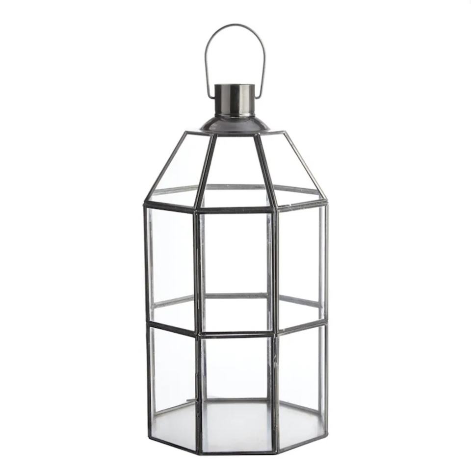 โคมไฟแก้วใส่เทียนพร้อมกรอบสีดำเงาสำหรับตกแต่งบ้านและสวนล่าสุด