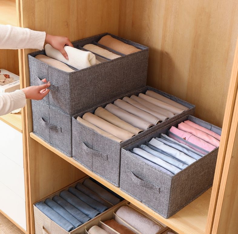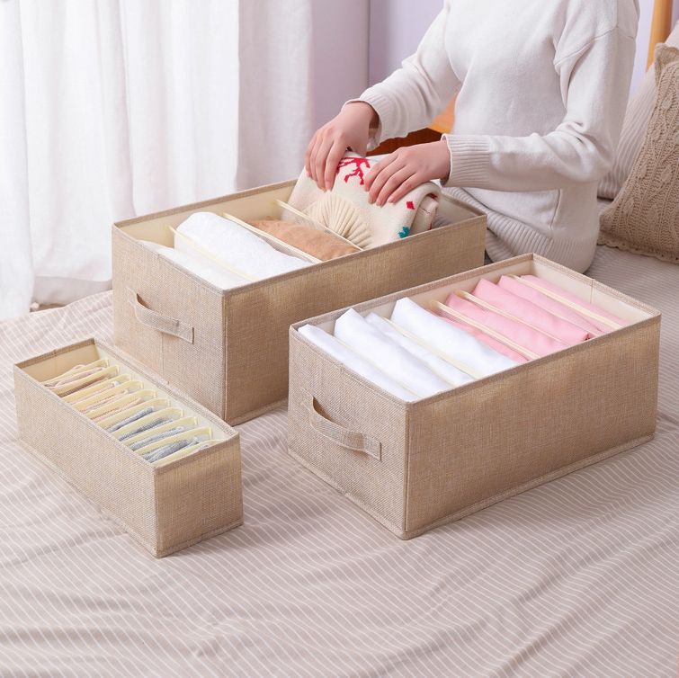 บ้านพับชุดชั้นในกระเป๋าลิ้นชักสไตล์ห้องนอนกางเกงยีนส์กล่องเรียงลําดับช่องกล่องเก็บเสื้อผ้า