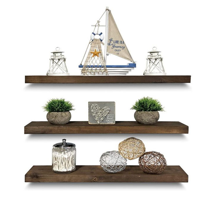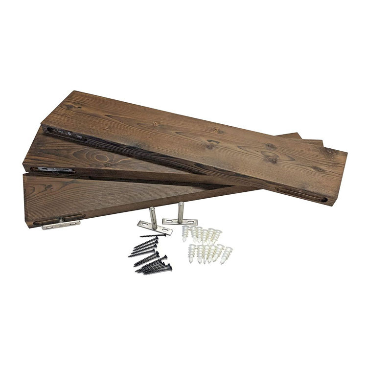 ชั้นวางของติดผนังไม้จริง 3 ชั้น ชั้นวางของติดผนังไม้