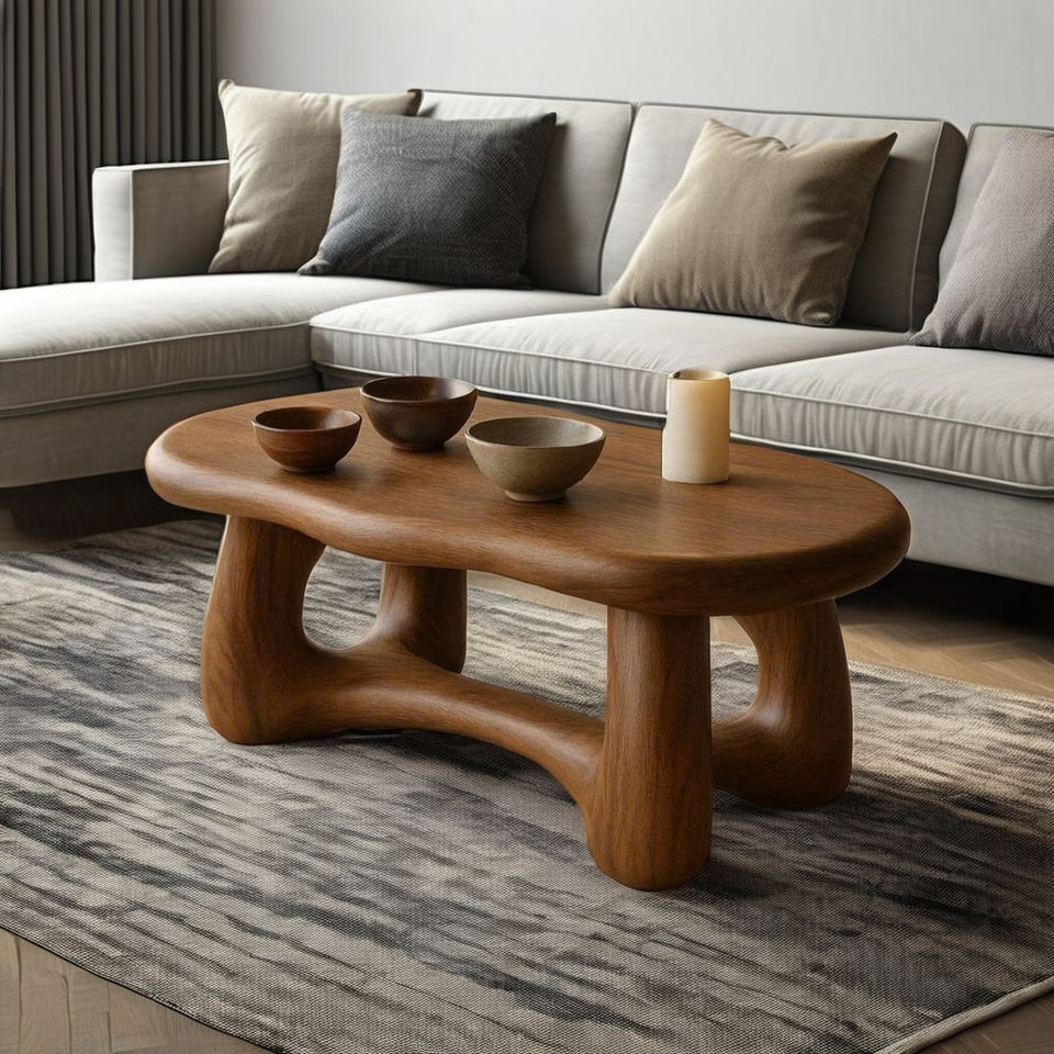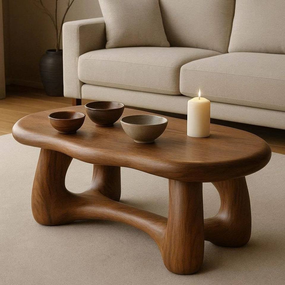 เฟอร์นิเจอร์ในบ้านโต๊ะกาแฟรูปปั้นไม้ขอบสดโต๊ะกลางทำจากไม้ธรรมชาติทำด้วยมือของตกแต่งบ้าน