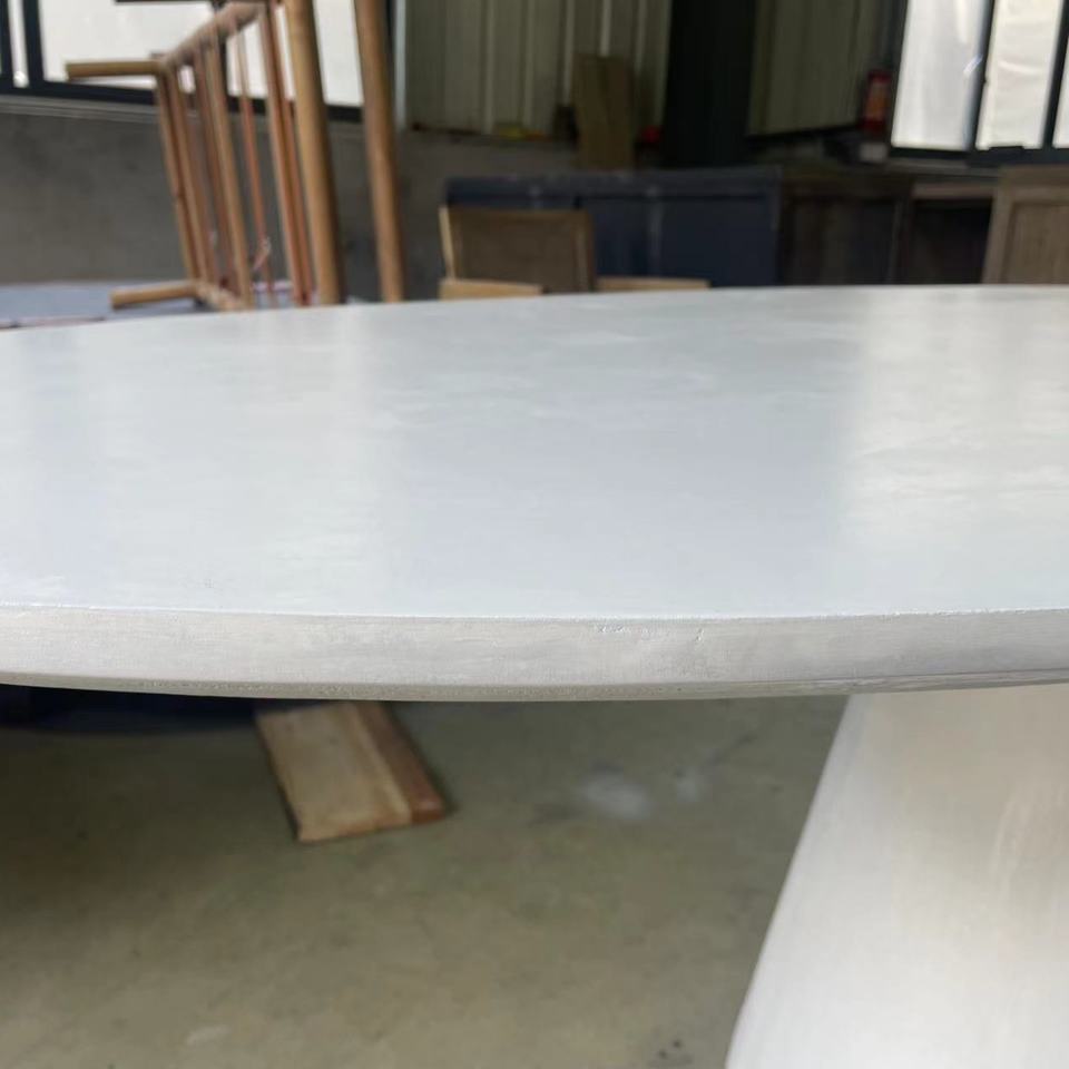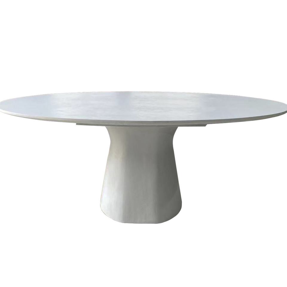 ชื่อสินค้า:โต๊ะอาหารคอนกรีตทรงรีสีขาวดำ เคลือบปูนซีเมนต์สไตล์มินิมอล