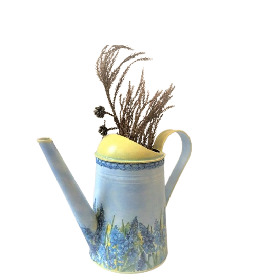กระป๋องรดน้ำโลหะทาสีมือสีฟ้าสำหรับสวนในบ้านอุปกรณ์สวนงานฝีมือบัวรดน้ำต้นกระป๋องดอกไม้