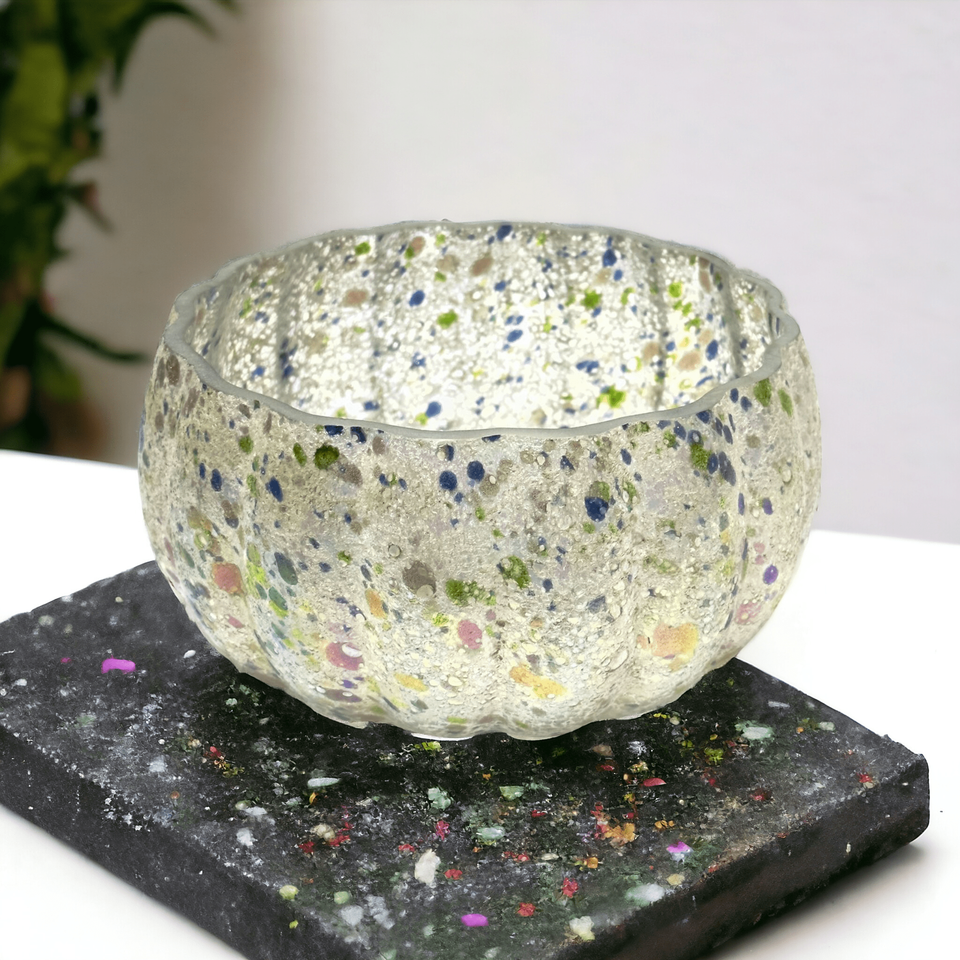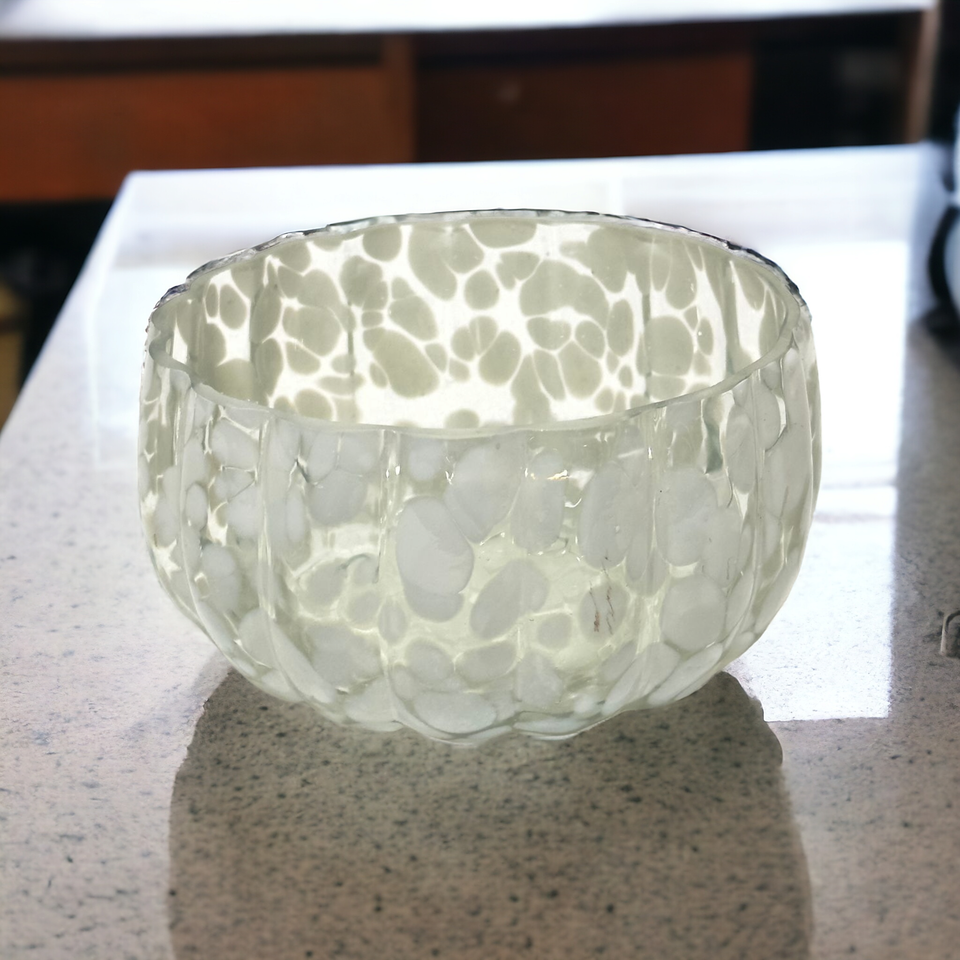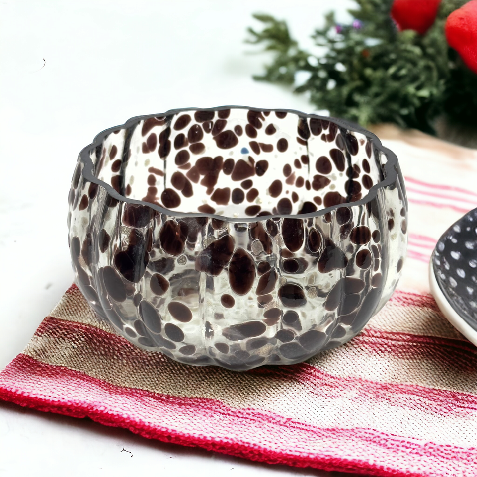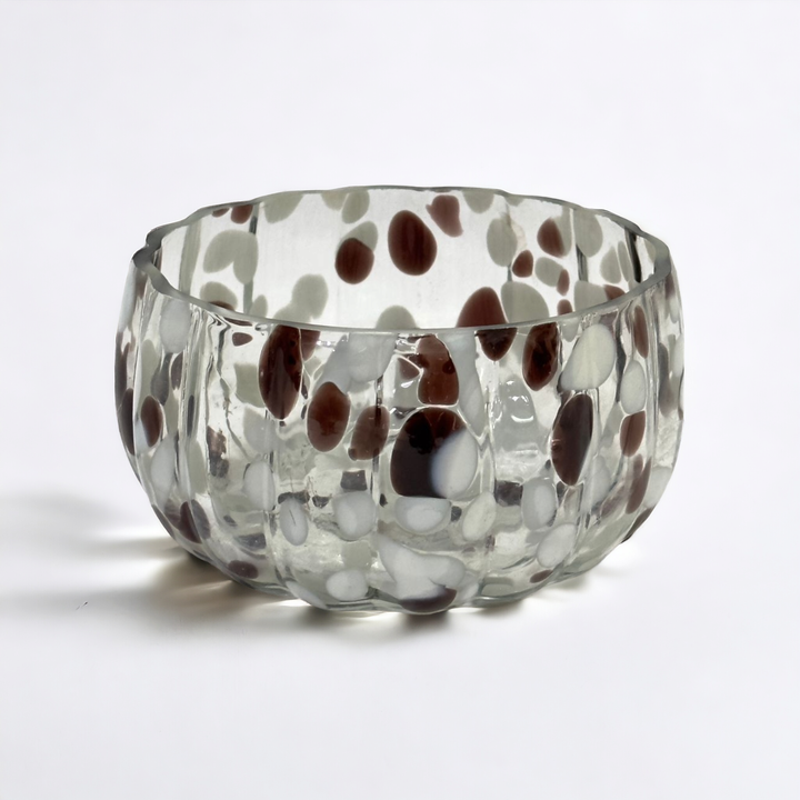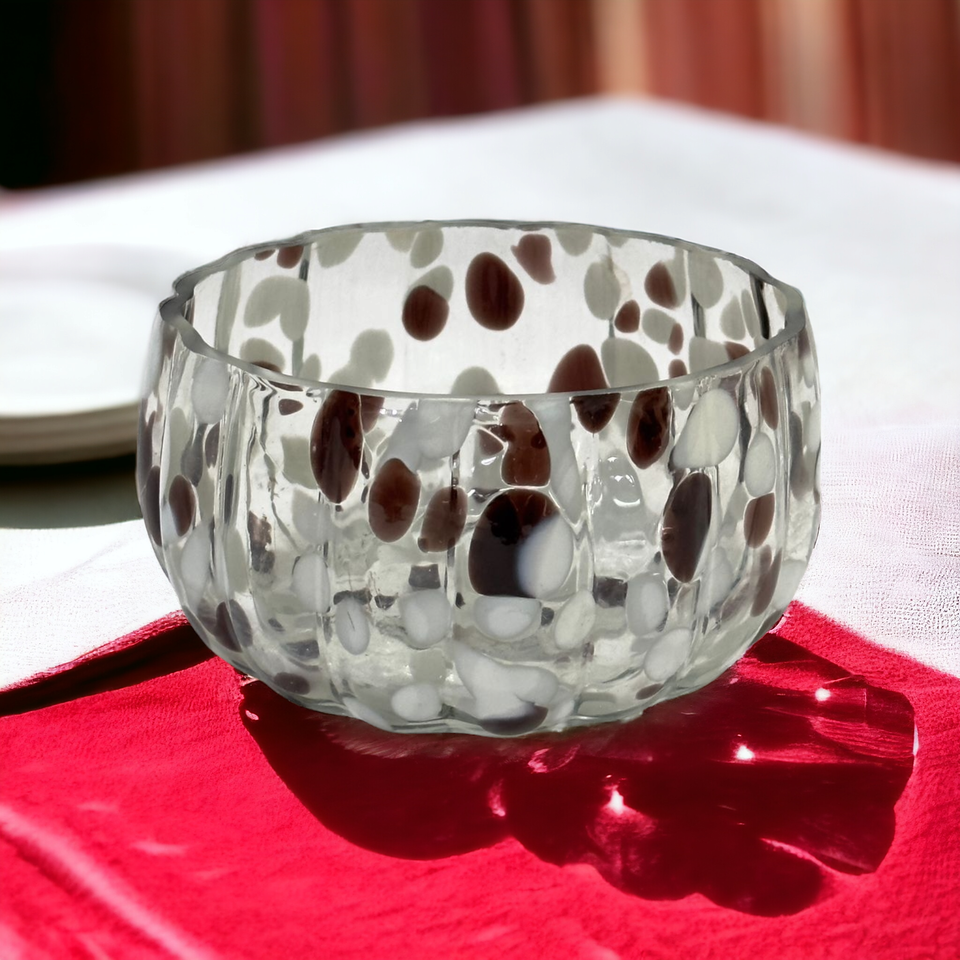 ชามลายจุดแก้วสีน้ำตาลเป่าด้วยมือสำหรับใส่ของหวานสลัดผลไม้ตกแต่งงานปาร์ตี้ทันสมัย
