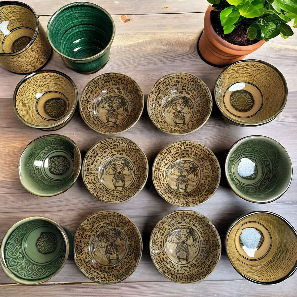 ชามใส่เทียนทางศาสนาอเนกประสงค์ทำจากไม้มะม่วงใช้ในบ้านและสวนชามเคลือบดินเผาพิมพ์ด้วยมือช่างฝีมือชาวอินเดีย