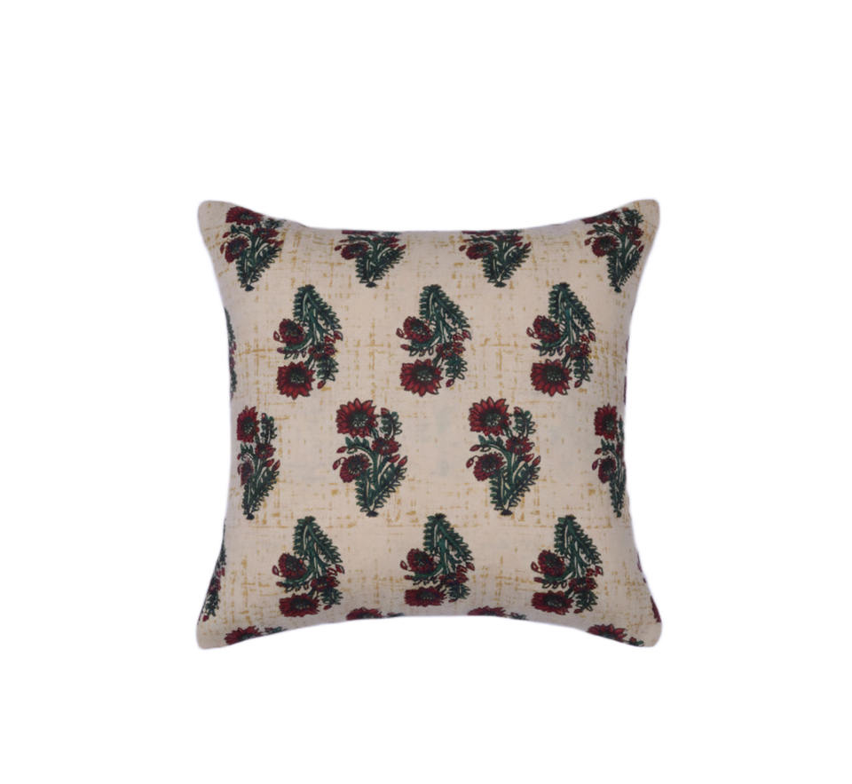 ปลอกหมอนอิงตกแต่งบ้าน โรงแรม ลายดอกไม้พิมพ์ลายบล็อกอินเดีย ทำมือ ผ้าฝ้าย 100% 200TC ขนาด 45*45 ซม. ซิปซ่อน