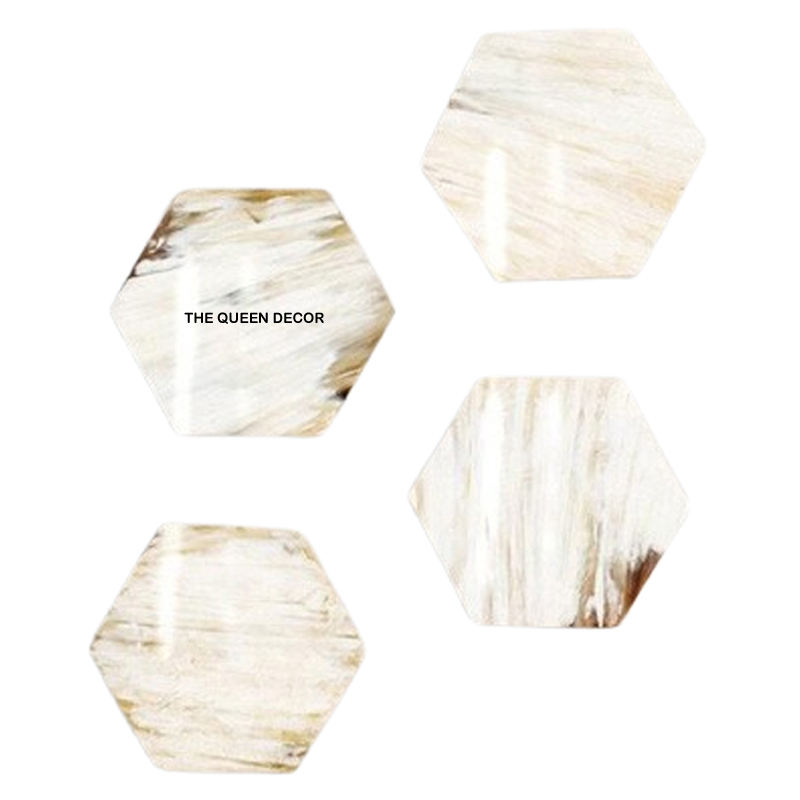 Home Hotels Fancy Modern Horn Stone Coasters Round Shape White Color Set of 6 Table Top Horn Coasters