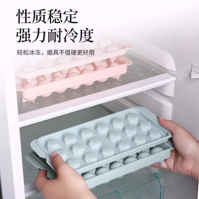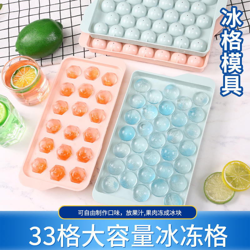 ถาดทำน้ำแข็งสำหรับใช้ในบ้าน 33 ช่องทรงกลม พลาสติกเกรดอาหาร พร้อมฝาปิด ความจุขนาดใหญ่ สำหรับทำแม่พิมพ์ในตู้เย็น