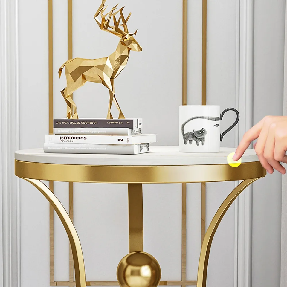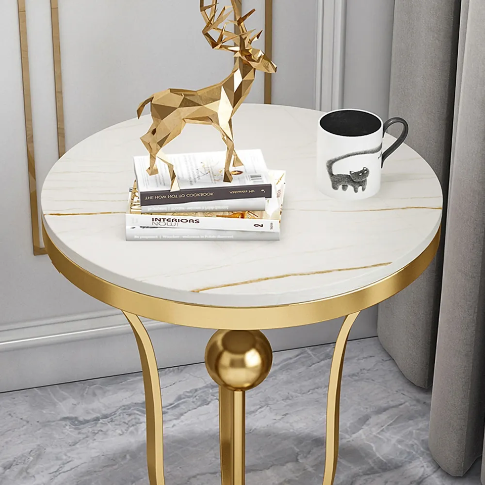 โต๊ะข้างทรงกลมหินอ่อนดีไซน์หรูหราทันสมัยสำหรับห้องนั่งเล่น โรงแรม สำนักงาน โต๊ะมุมตกแต่งบ้าน
