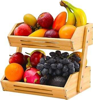ตะกร้าเก็บของโลหะสำหรับครัวเรือน ชั้นวางสองชั้นสำหรับผลไม้และผัก แบบขัดเงา