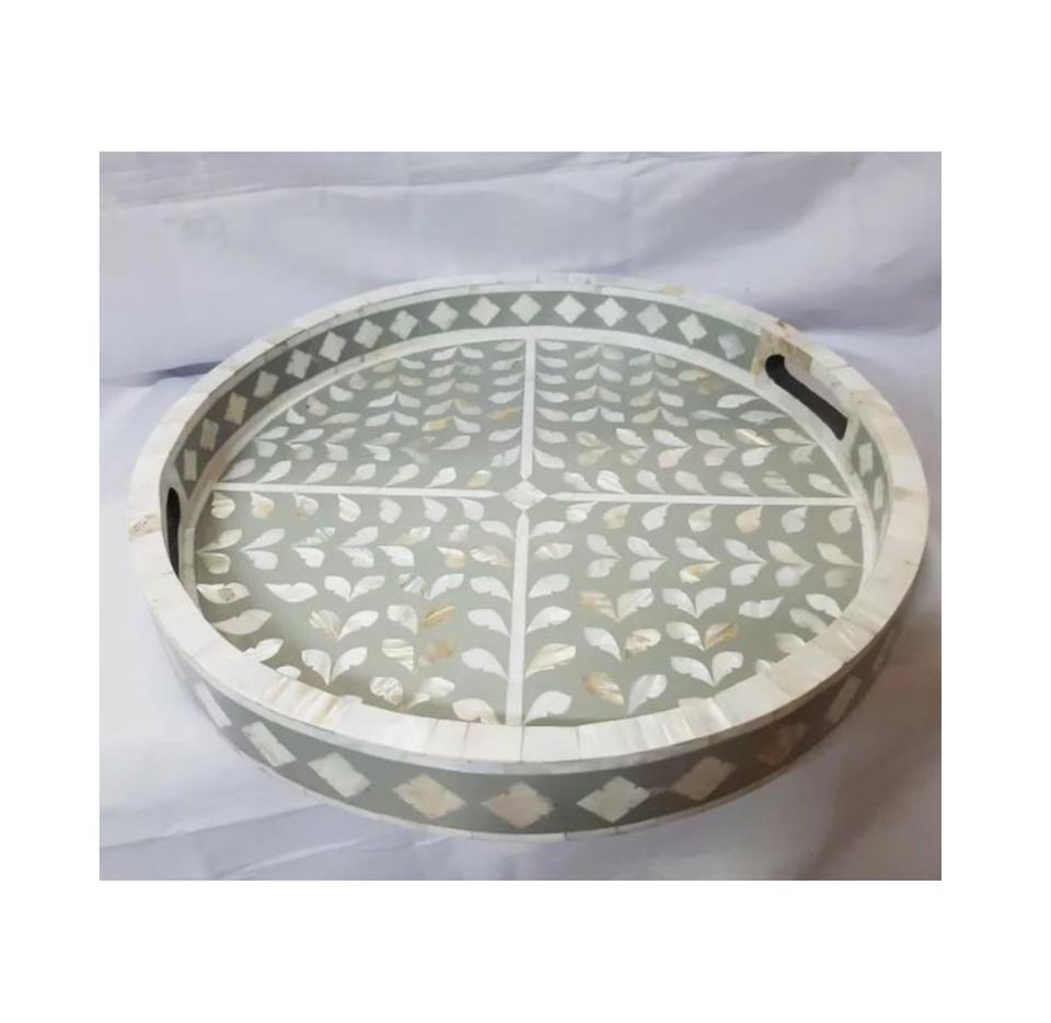 ถาดเสิร์ฟอาหารทรงกลมโบราณสำหรับโต๊ะครัวที่บ้าน ถาดโชว์ขนมหวาน คุณภาพเยี่ยม ทำจากเปลือกหอยมุก ราคาถูก