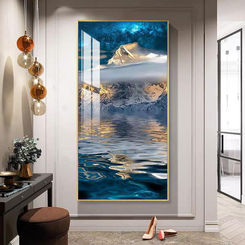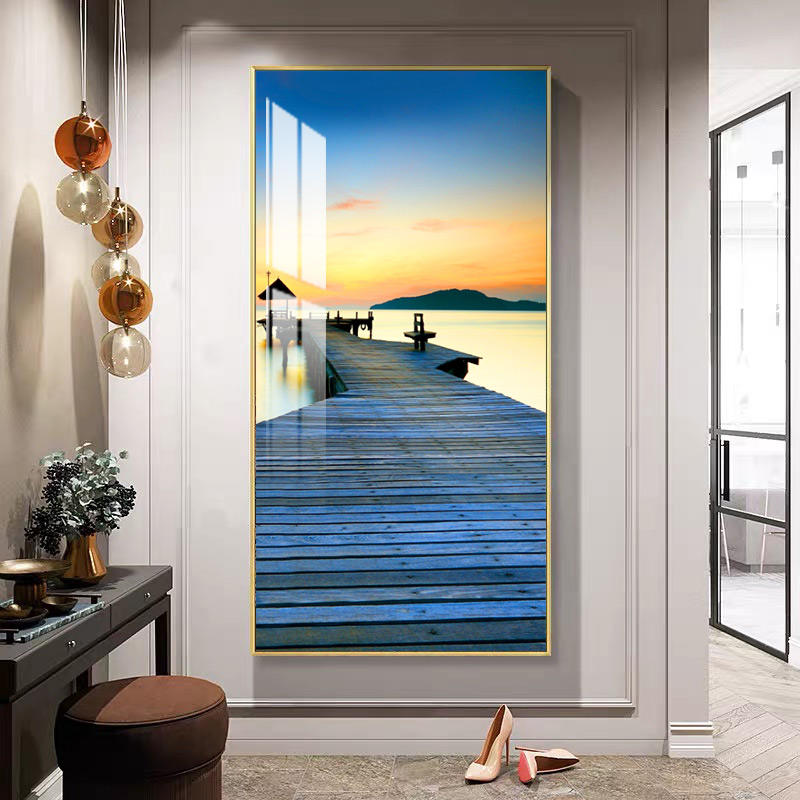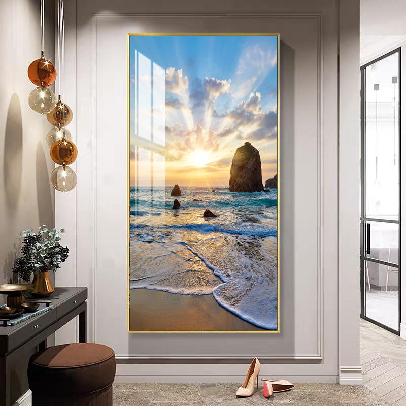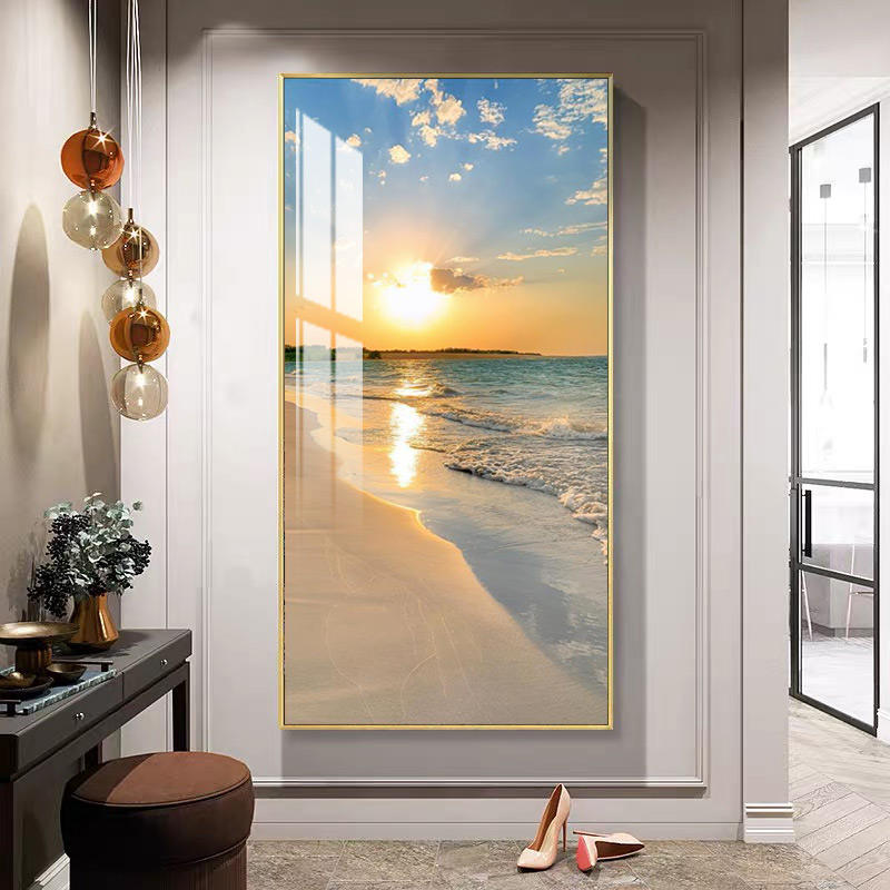 บ้านพระอาทิตย์ตกขนาดใหญ่ชายหาดพร้อมแขวนภาพกระจกนิรภัยภาพวาดคริสตัลผนังศิลปะมอร์เดนกระจกเทมเปอร์