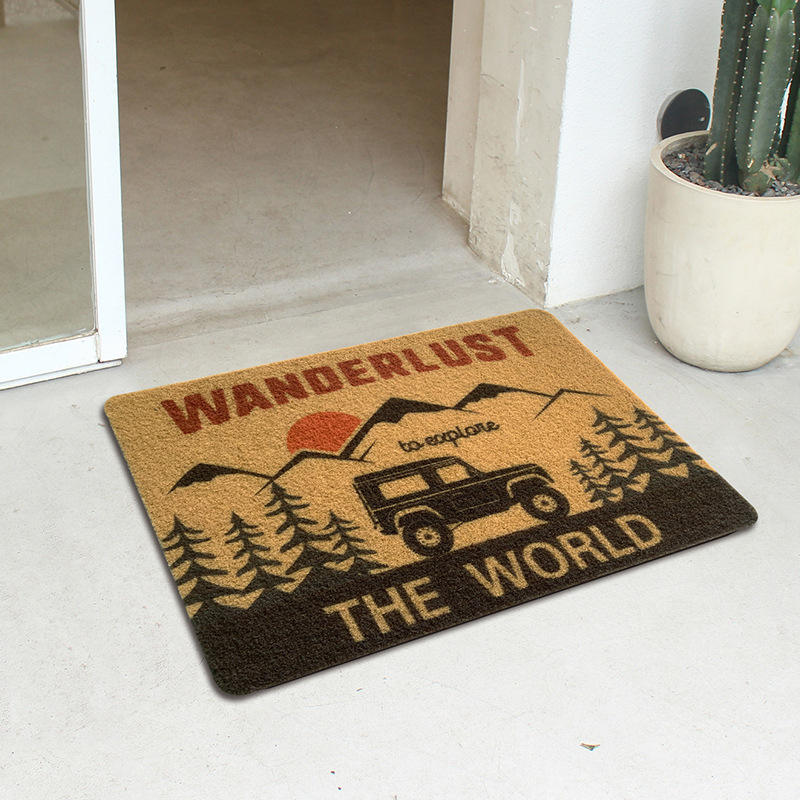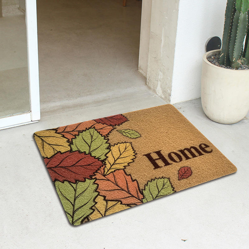 พรมเช็ดเท้าลายใบไม้ ใยมะพร้าวเทียม รูปทรงสี่เหลี่ยมผืนผ้า กันลื่น สำหรับทางเข้าบ้านและใช้ในบ้าน