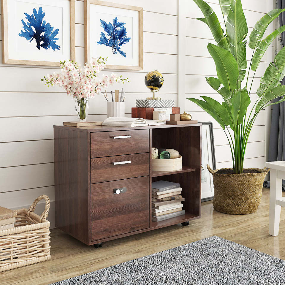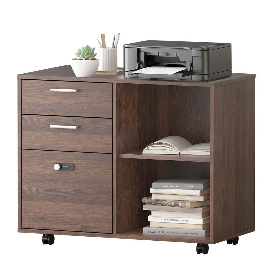โต๊ะทำงานที่บ้าน3ลิ้นชักตู้เก็บเอกสารด้านข้างพร้อมล็อกขาตั้งเครื่องพิมพ์แบบเปิด
