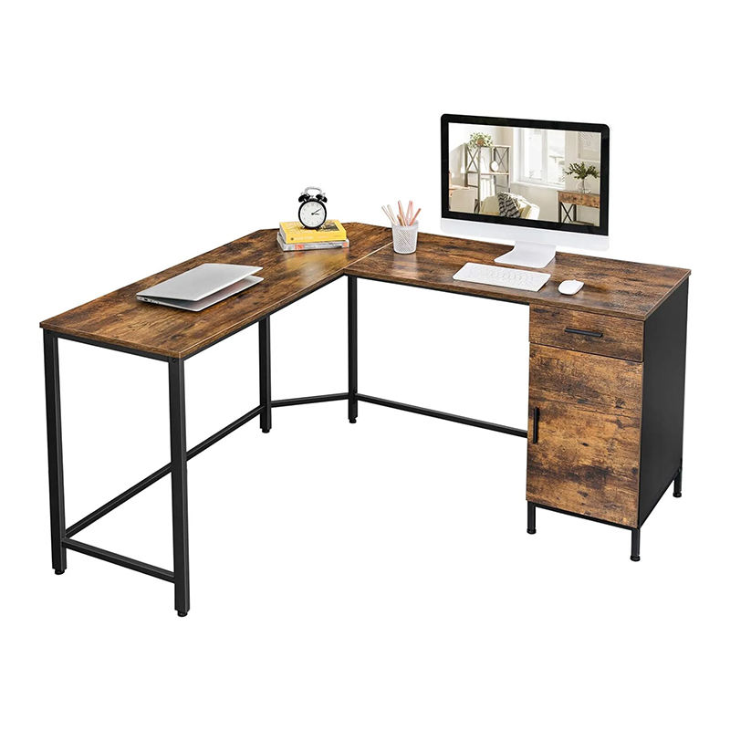 เฟอร์นิเจอร์สำนักงานบ้านโต๊ะไม้ MDF กรอบเหล็กโต๊ะห้องนั่งเล่นไม้รูปตัว L โต๊ะไม้เขียนยืดขยายได้