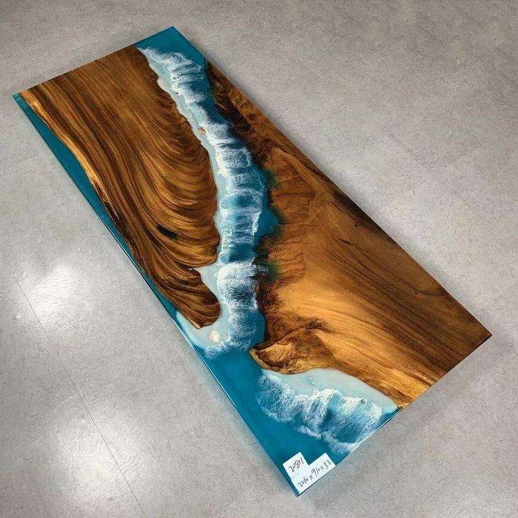 โต๊ะอาหารเรซิ่นทรงสี่เหลี่ยมผืนผ้าไม้กระถินเทศทำมือสุดหรู ทันสมัย กันน้ำ สำหรับบ้าน สำนักงาน และห้องนั่งเล่น