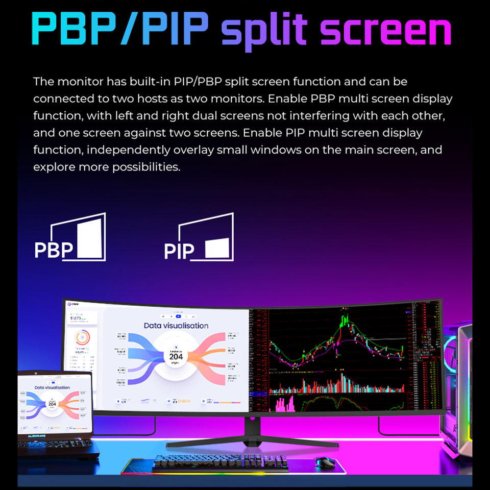 หน้าจอ LCD แบบโค้งสำหรับโฮมออฟฟิศและโรงเรียนจอภาพสำหรับเล่นเกมขนาด49นิ้วจอภาพคอมพิวเตอร์5K IP