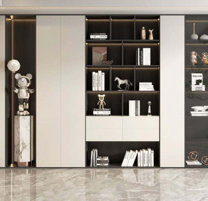 ตู้หนังสือไม้สำหรับโฮมออฟฟิศ ตู้หนังสือไม้สไตล์โมเดิร์นสำหรับโฮมออฟฟิศ ห้องนั่งเล่น ห้องนอน โรงเรียน โรงแรม สำหรับตกแต่งบ้าน