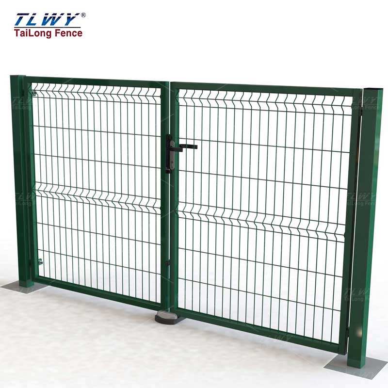รั้วเหล็ก3D กลางแจ้งบ้านสองประตูพร้อมเสาตกแต่ง3D โค้งเชื่อมรั้วสวน