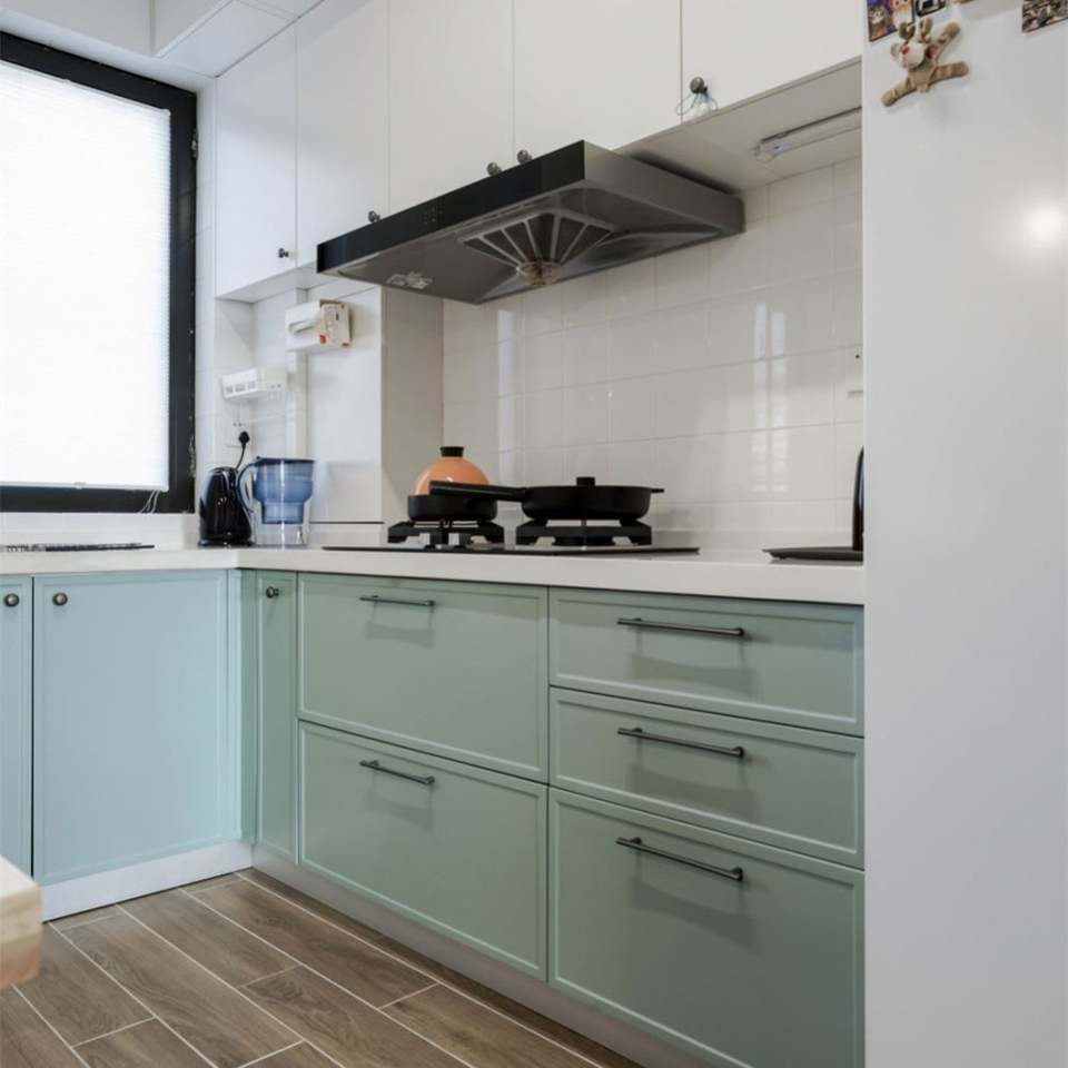 ตู้ครัวไม้จริงคุณภาพสูง ดีไซน์คลาสสิกสไตล์เชคเกอร์ สำหรับใช้ในบ้าน