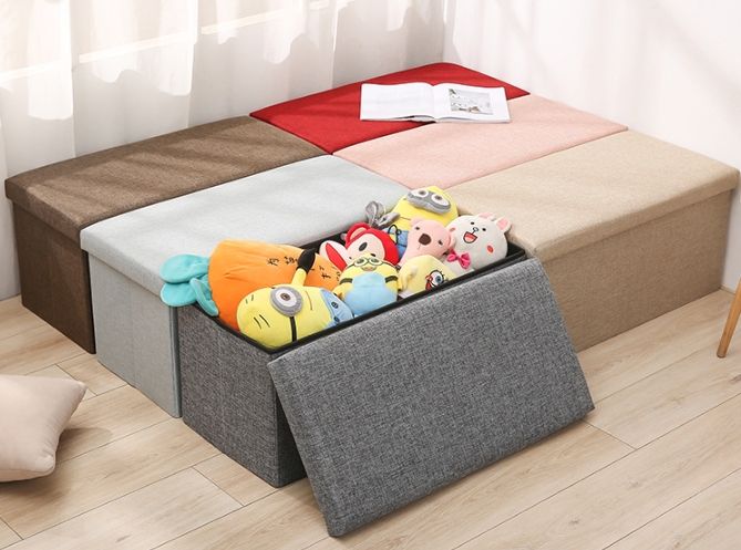 เก้าอี้สตูลเก็บของขนาดเล็กแบบผ้าพับได้ทรงสี่เหลี่ยมผืนผ้า ใช้เป็นที่วางเท้าหรือที่นั่ง