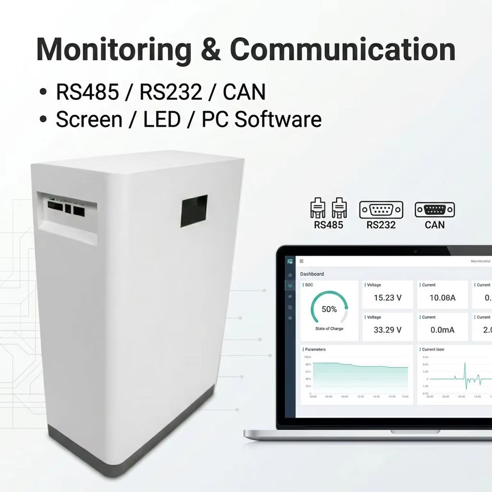 แบตเตอรี่พลังงานแสงอาทิตย์ใช้ในบ้าน8kWh LiFePO4 51.2V ระบบเก็บพลังงานติดผนัง RS485ฟังก์ชั่นจ่ายไฟสำรองแบบ off GRID