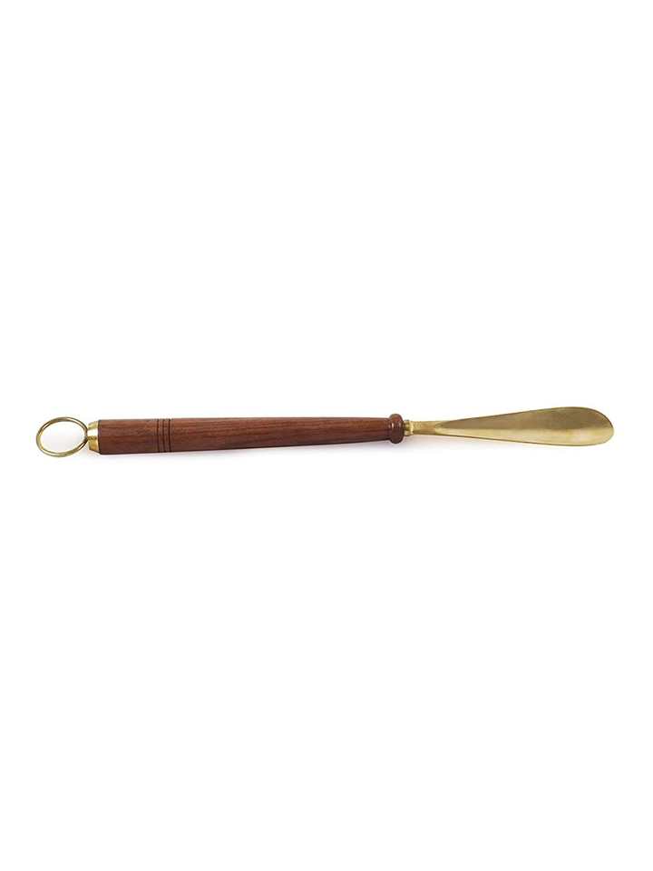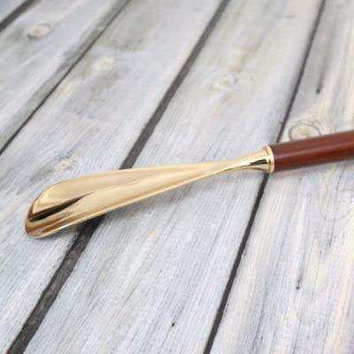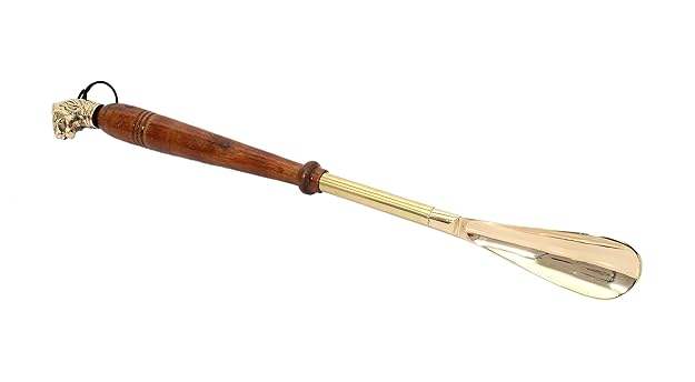 Home Sparkle Metal Brass Shoe Horn with Wooden Handle Premium Long Handle Shoe Helper for Easy Wear Durable Design