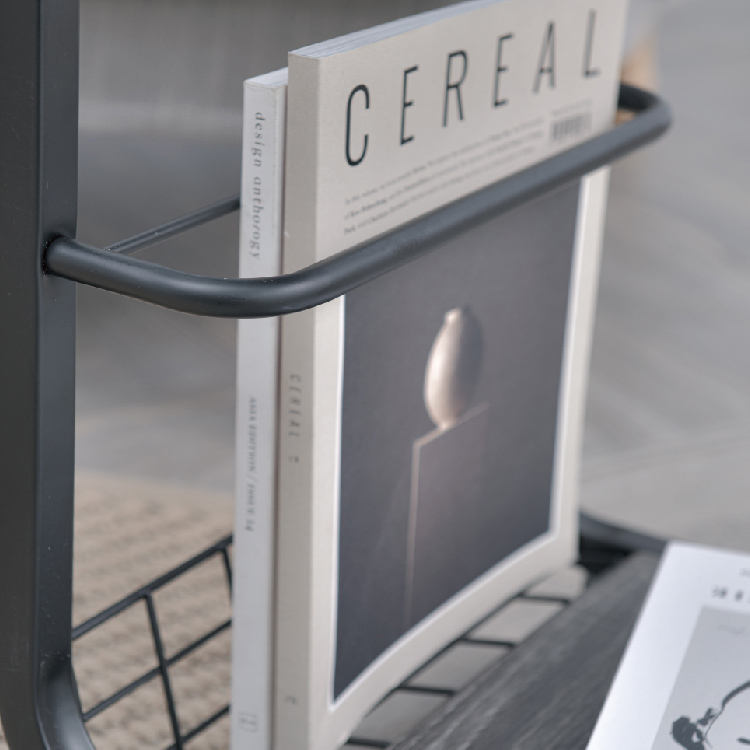 โต๊ะข้างเตียงมือถือพร้อมล้อที่เก็บของในบ้านสีดำ