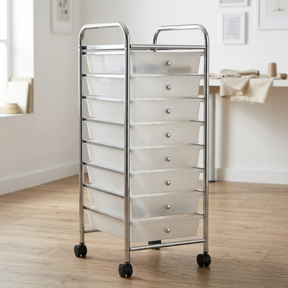 MIT DIY เก็บของในบ้านเฟอร์นิเจอร์8ชั้นลิ้นชักเก็บของพลาสติกใช้ในครัวเรือนห้องนั่งเล่นชุบโครเมียมที่ทันสมัยประหยัดพื้นที่